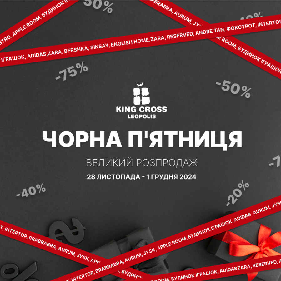 29 листопада графік роботи торгової галереї буде продовжено до 22:00. Встигніть на нашу Чорну П'ятницю!