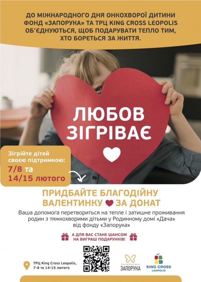 До Міжнародного дня онкохворої дитини благодійний фонд «Запорука» та ТРЦ King Cross Leopolis об’єднуються, щоб подарувати тепло дітям і родинам, які борються за життя.