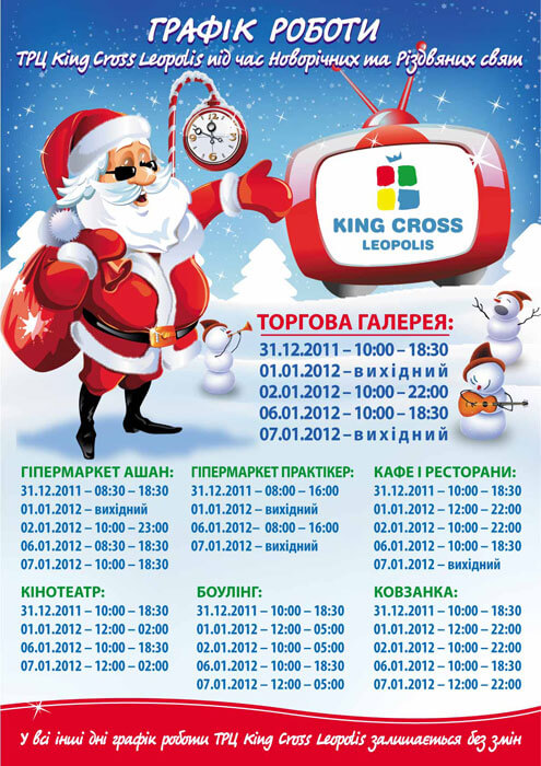 ГРАФІК РОБОТИ ТРЦ King Cross Leopolis під час Різдвяних та Новорічних свят.
