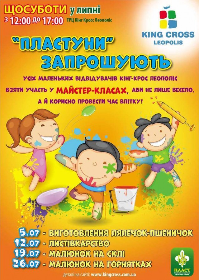 Щосуботи у липні з 12:00 до 17:00 - "Пластуни" запрошують на майстер класи в ТРЦ King Cross Leopolis!