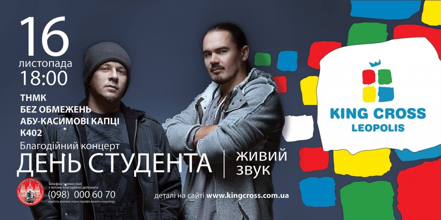 King Cross Leopolis та Ініціатива громадських організацій "Допомога армії України" запрошують на БЛАГОДІЙНИЙ КОНЦЕРТ на ДЕНЬ СТУДЕНТА, 16 листопада о 18:00.