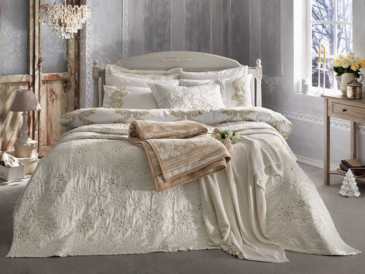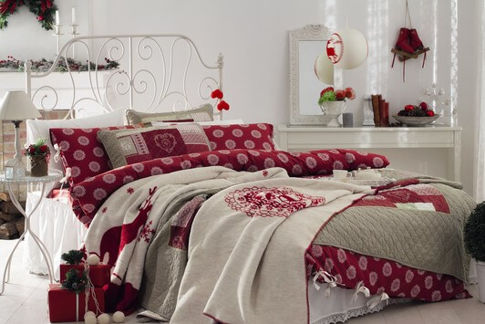 З приходом холодів у кожної господині виникає бажання облаштувати тепле і затишне гніздечко. Створити комфортну атмосферу будинку допоможуть в'язані пледи, махрові і жакардові покривала English Home. Бренд використав в колекції традиційні "зимові" кольори - білий, сріблястий і червоний. Текстиль прикрашають класичні новорічні мотиви - варіації на тему сніжинок і складні візерунки, що нагадують в'язь інею на ранковому склі. Білосніжні штори з вишивкою додадуть світла, якого так не вистачає в холодну пору, крім того, це дозволить візуально збільшити приміщення.