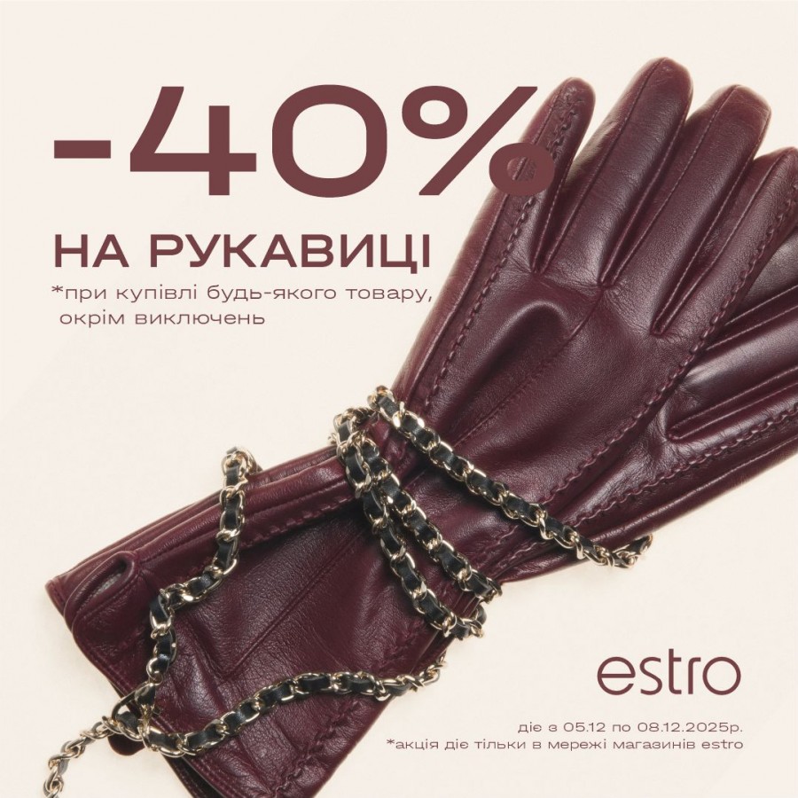 Встигніть оновити свій зимовий лук та отримуй знижку 40% на всі шкіряні рукавички за умови придбання будь-якого товару!*