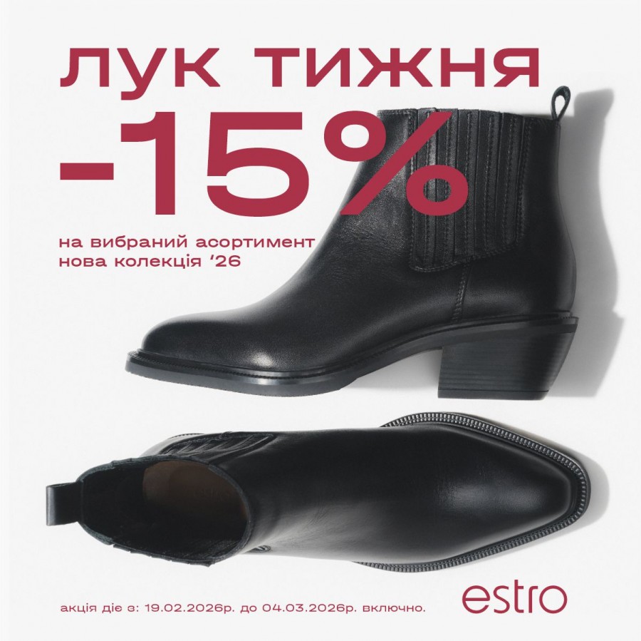 Весна вже тут, а з нею - і перші знижки сезону! Обирайте свій «лук тижня» зі знижкою 15%  на вибрані моделі весняної колекції.