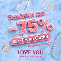 У LOVE YOU — ювелірні подарунки зі знижками до -75%!