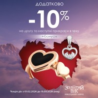 Обирай улюблені золоті та срібні прикраси та отримуй додаткову знижку -10% на другу та наступні прикраси в чеку. Доступна оплата бонусами*